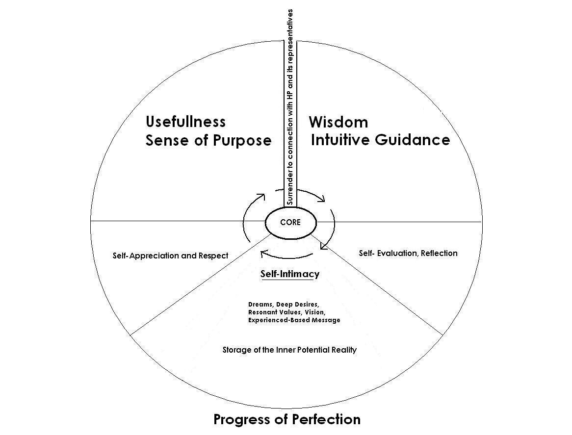By the way, the last statements do not reflect my current state of mind. I am just following the cycle around. Notice the arrows circling the core of my being in a clockwise direction? That represents the propulsion of my will. And this chart reflects my understanding of self-will, that there is bad self-will, which is the product of fear, and tends to isolate and cut-off. Then there is good self-will that pushed me to pursue sobriety in the first place. I wanted to live and was willing to do whatever I had to secure that end. I would not be breathing without a good dose of this self-preservation.