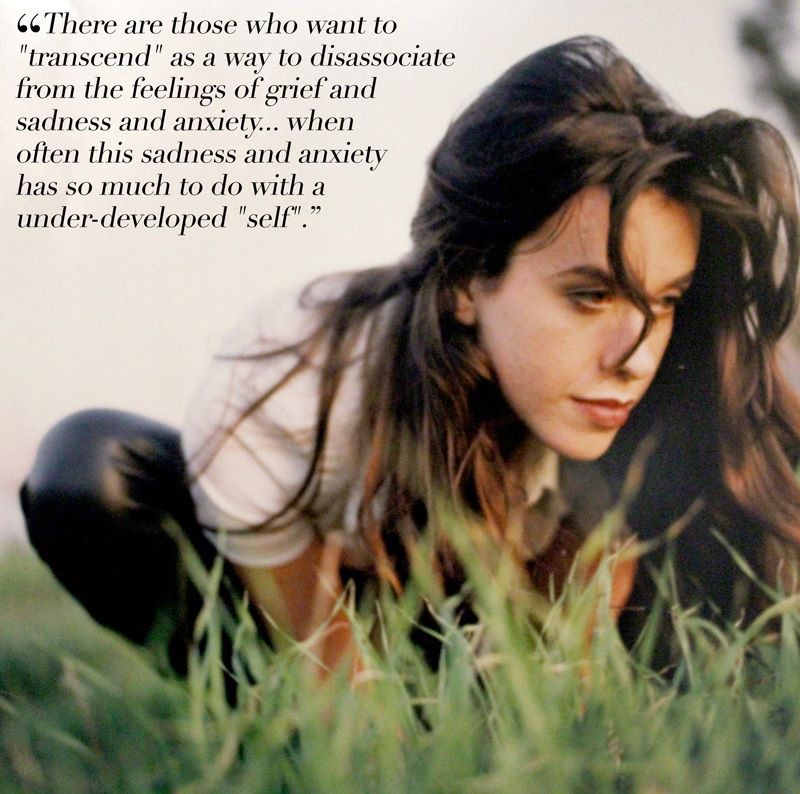 If we don’t have a sense of psyche and a developed sense of self and a sense of ego to begin with, there’s nothing to transcend and it makes it really hard to function in day-to-day life and relationships. There are those who want to “transcend” as a way to disassociate from the feelings of grief and sadness and anxiety….when often this sadness and anxiety has so much to do with a under-developed “self.” So rather than attempting to “transcend” (as a way to avoid life)