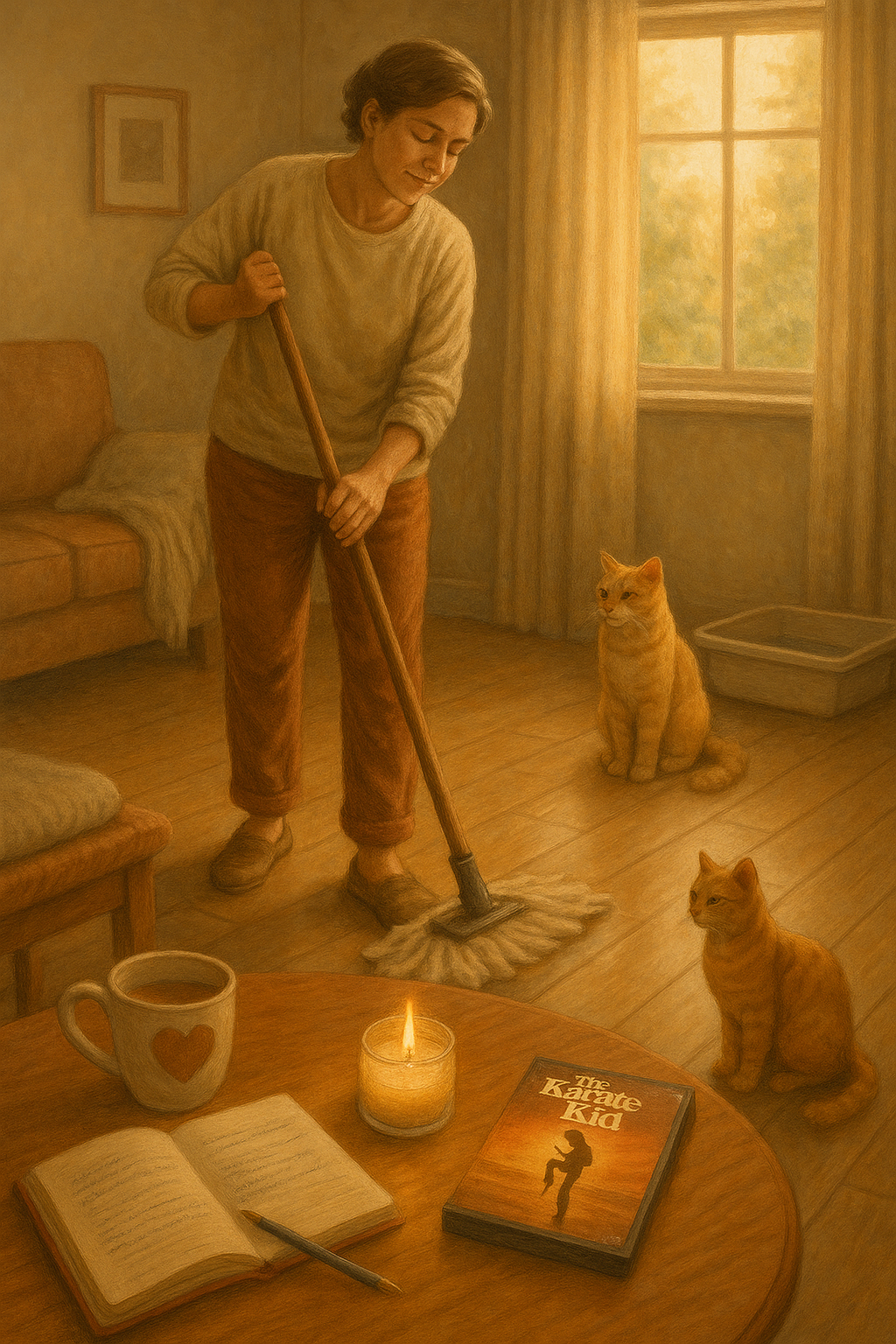 It’s powerful to remember that changing kitty litter or mopping the floor can be enough. These are not distractions from a spiritual life—they are the spiritual life, when I let them be. I remember that line from the Karate Kid so many years ago; “Wax on, wax off.” It seems appropriate here.