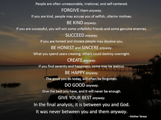 She told me that, since this is the only newsstand around, she would rather detach from the behavior than do without her morning paper. She explained that she is powerless over other people’s attitudes, but she doesn’t have to permit them to goad her into lowering her own standards for herself. To the best of her ability, she chooses to treat everyone she meets with courtesy. Other people are free to make whatever choices they prefer.