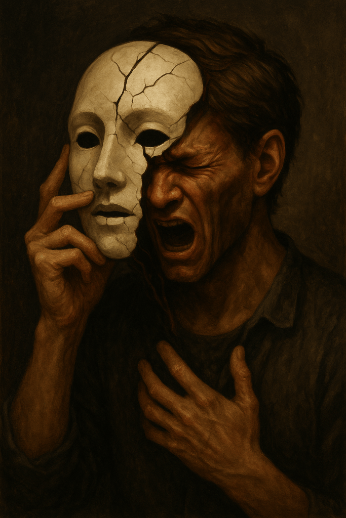 When the mask begins to crack, what I call fear is actually the trembling of the imprisoned godshard within — the one who has been pretending to be domesticated for too long. It is not weakness that shakes, but the body’s revolt against falsity. The primal terror is not “What if they see me?” but “What if I am forced to remain unseen forever?” That is the agony recovery interrupts.
